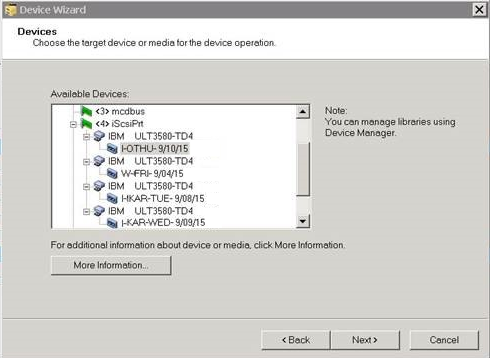 - If you configure Physical Tape library/Virtual Tape Library (VTL) with a changer, Device Wizard does not displaythe device details. As the Device Wizard does not consider the changer devices.