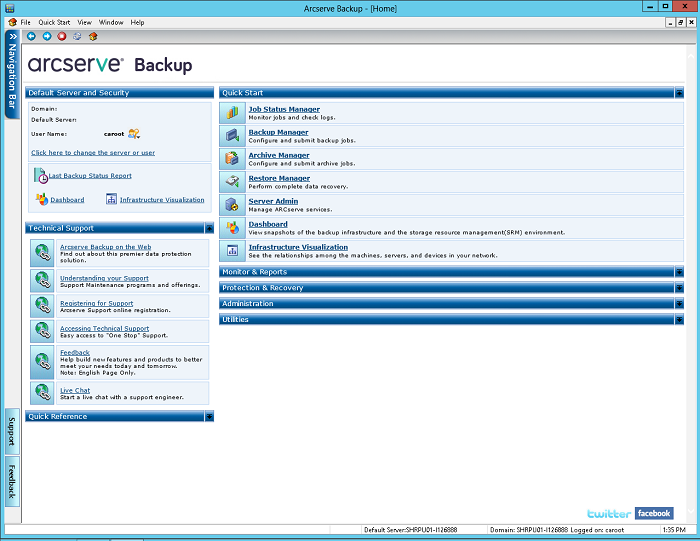 - Arcserve Backup on the Web--Links you to the Arcserve site that provides product information about Arcserve Backup.