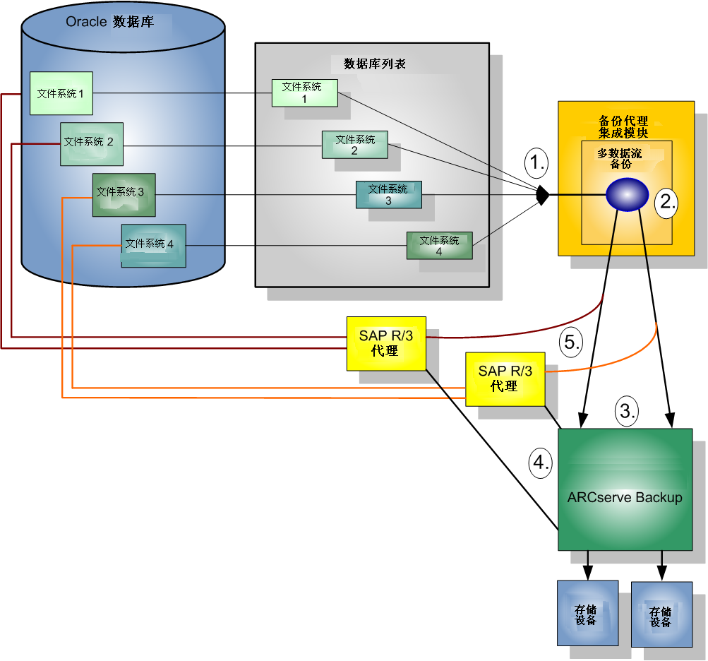 示例:CA ARCserve Backup 使用多数据流如何备份 Oracle 数据