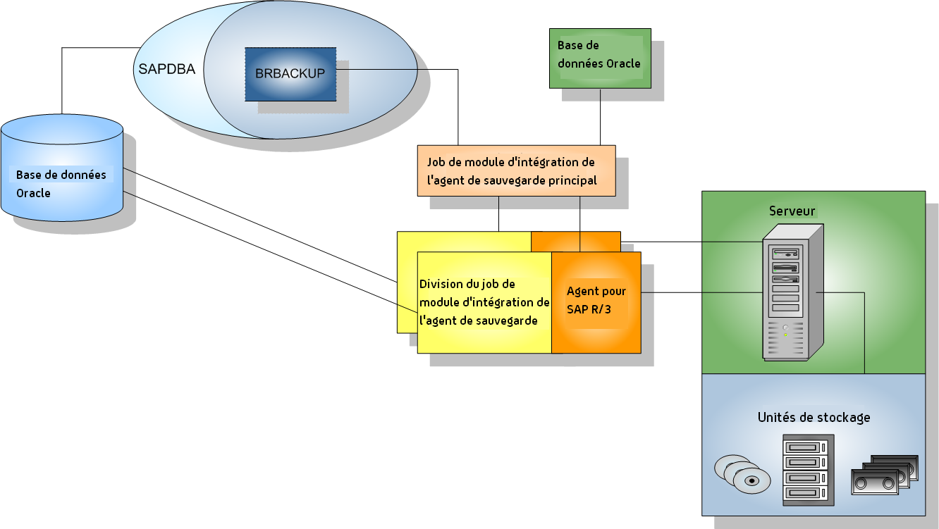 Le graphique suivant illustre le traitement des informations par l'option, via des jobs parallèles, sans interrompre les autres activités SAP R/3 :