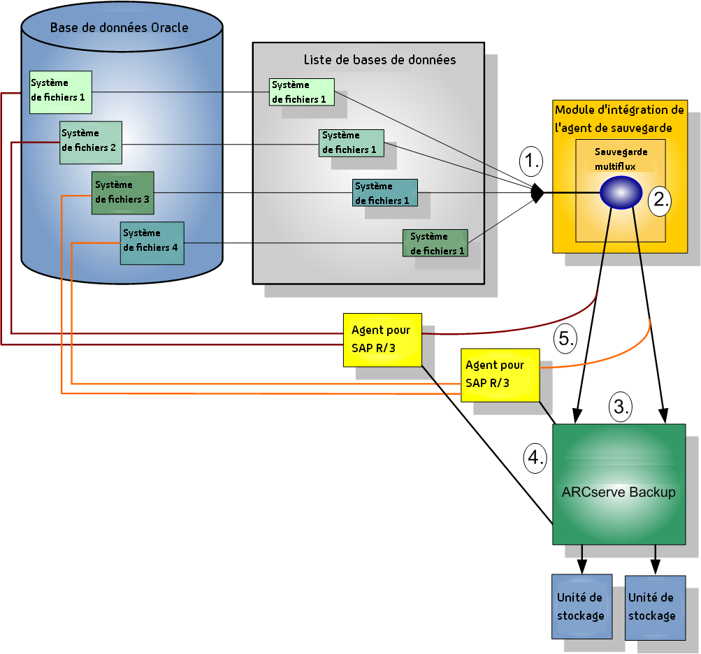 Exemple : sauvegarde des données Oracle par CA ARCserve Backup via le multiflux