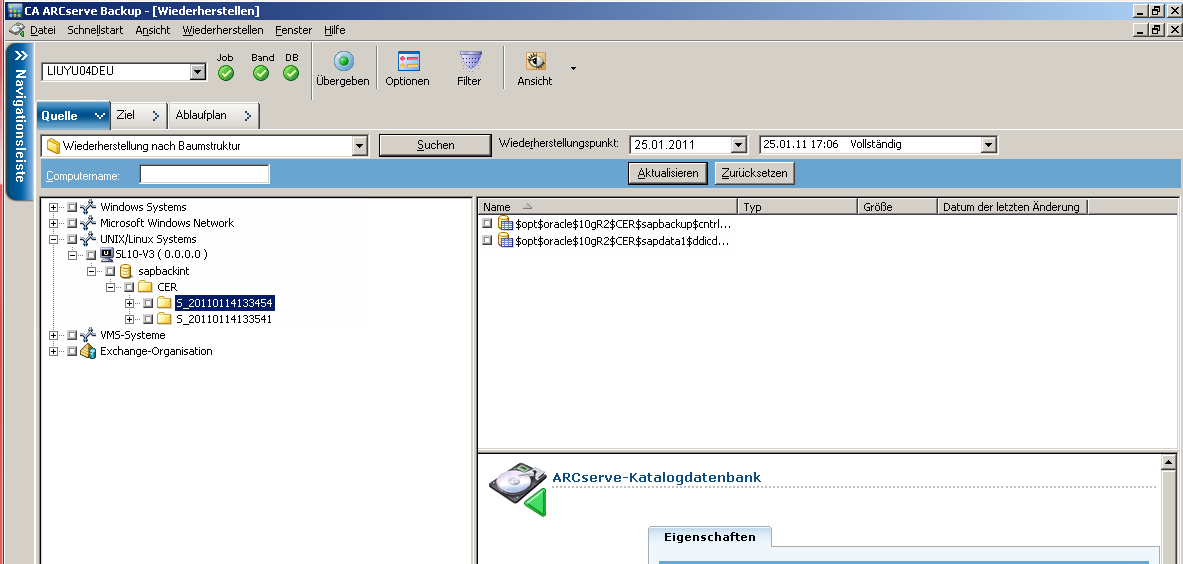 Verwenden Sie den Wiederherstellungs-Manager, um detaillierte Informationen über Ihren Sicherungsjob anzuzeigen. Sie können die Namen gesicherter Dateien und Sitzungsinformationen anzeigen.