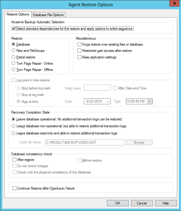 Microsoft SQL Server 代理提供还原选项。