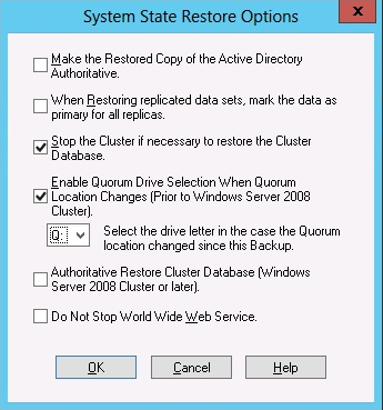 Note:如果叢集節點是 Active Directory 伺服器的話,您必須在還原系統狀態工作階段時,將主要節點重新啟動為目錄還原模式。