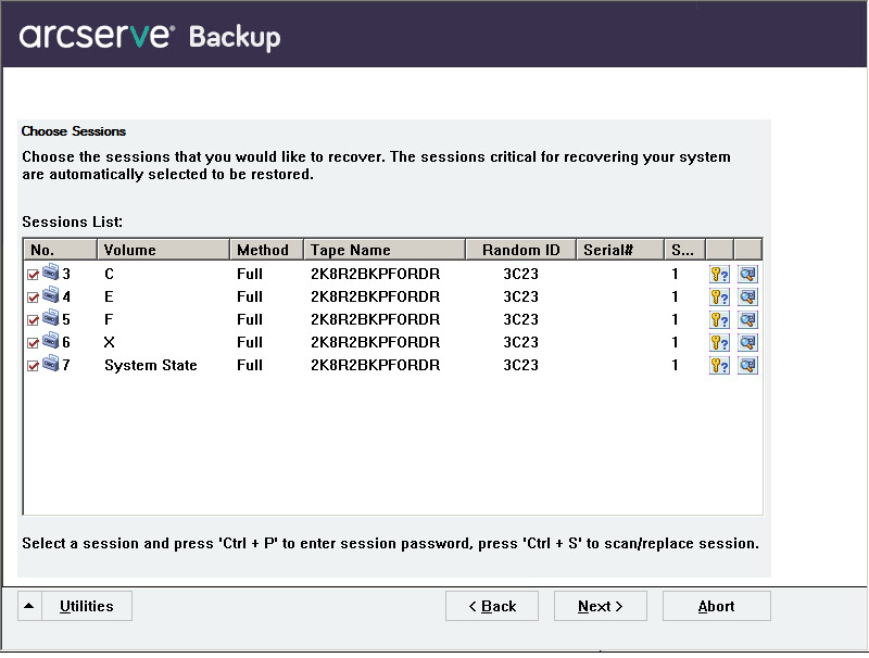 重要信息!如果 Arcserve Backup 数据库安装该计算机上,且该计算机不是 Arcserve Backup 主服务器,此时则必须运行 Arcserve 数据库恢复向导。有关 Arcserve 数据库恢复向导的详细信息,请参阅《Arcserve Backup 管理指南》中的主题“使用 Arcserve 数据库恢复向导恢复 Arcserve Backup 数据库”。