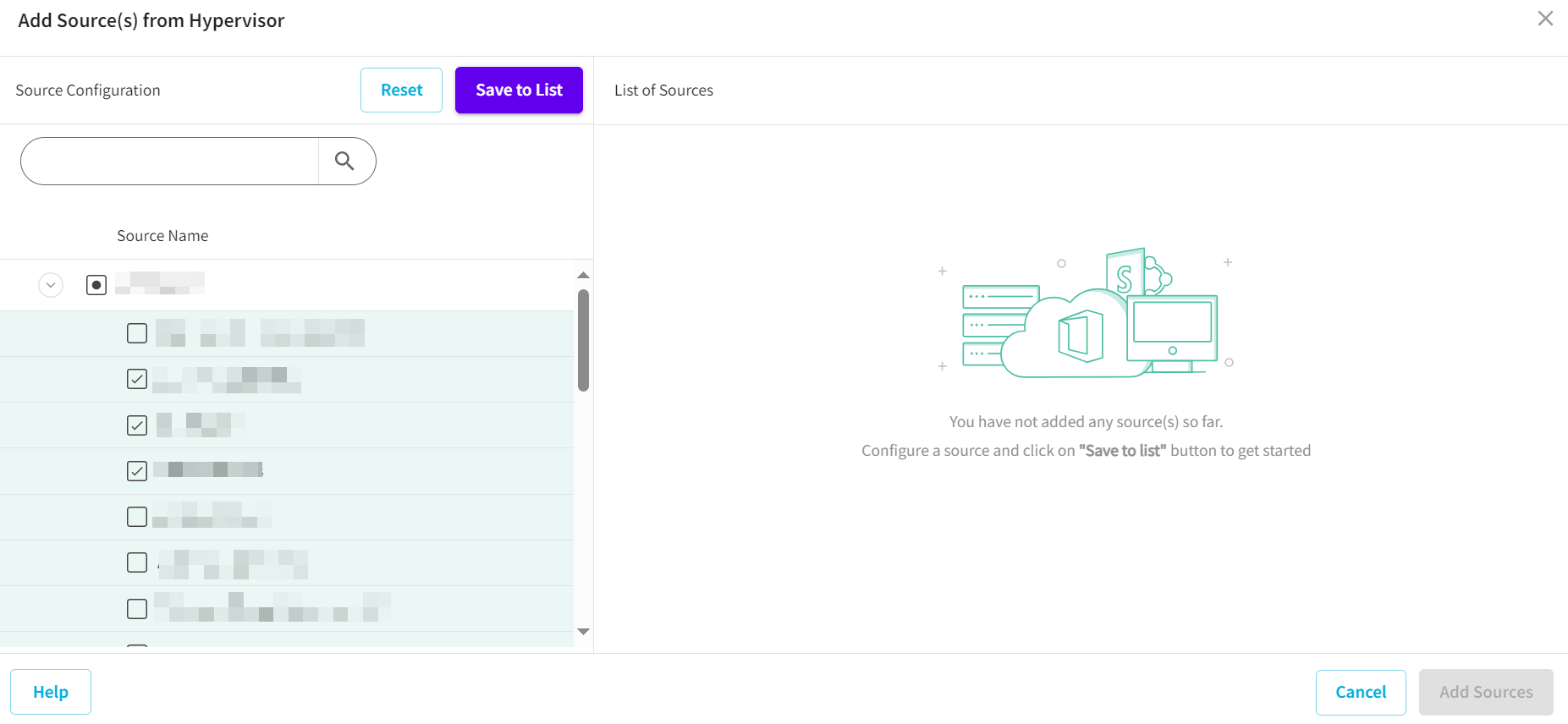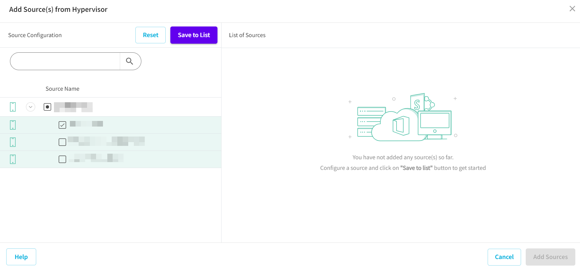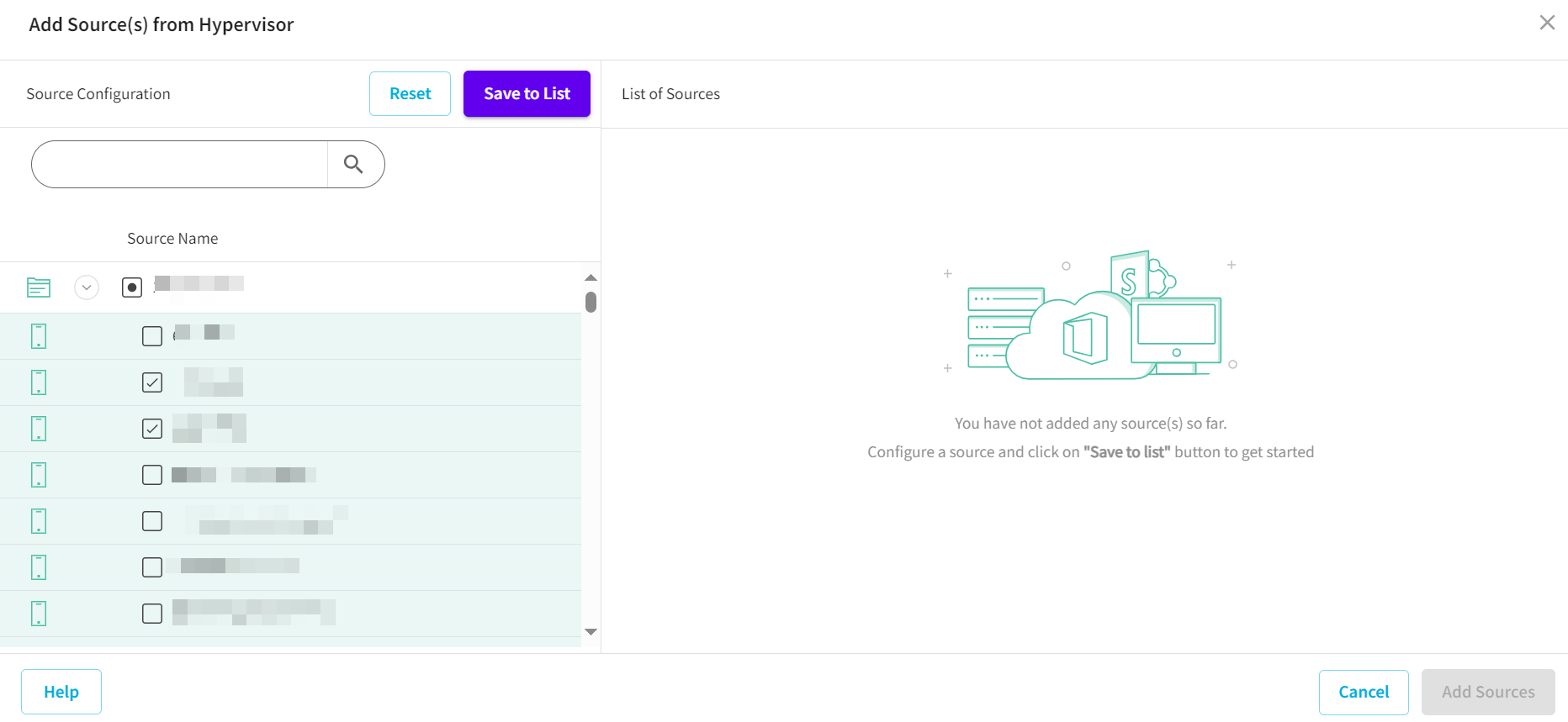 - On the Add Source(s) from Hypervisor screen, do the following: