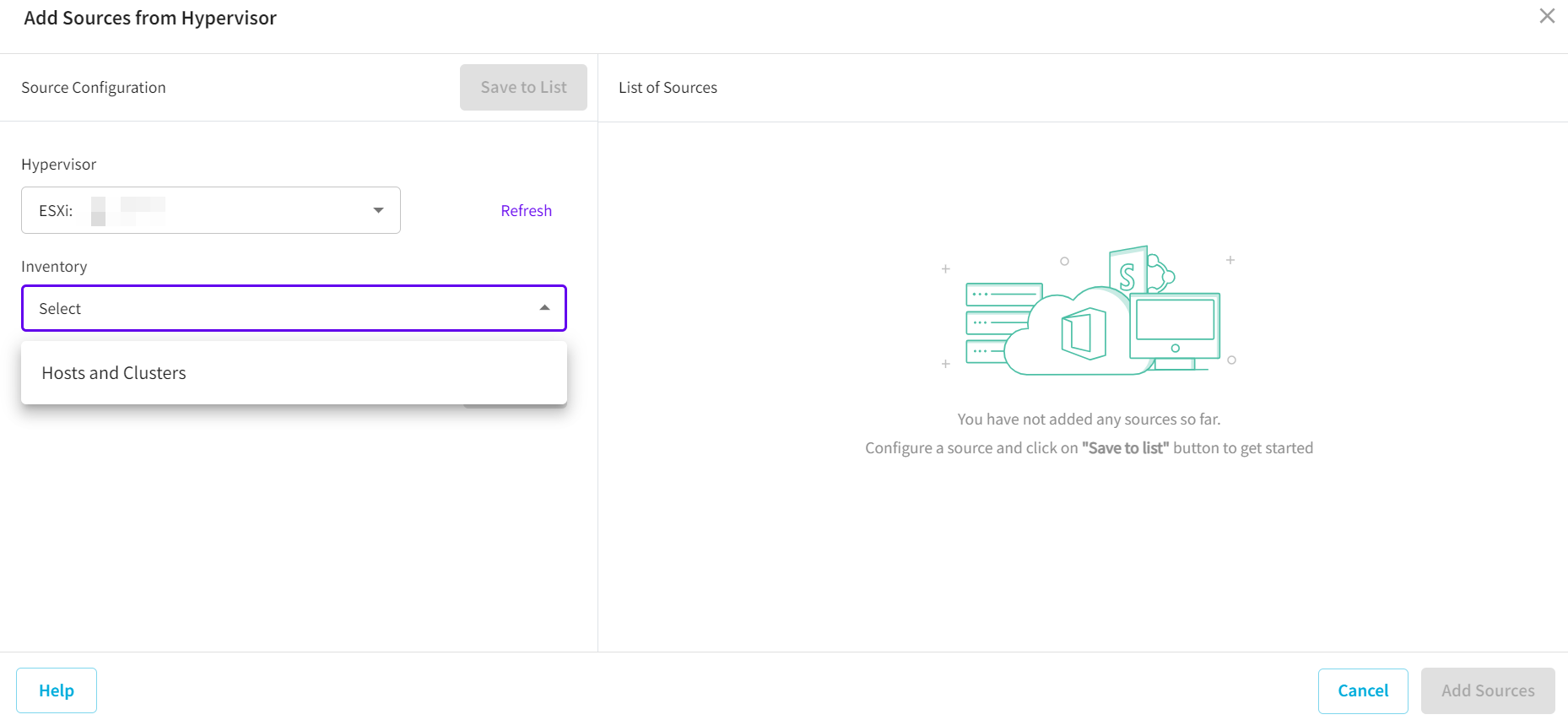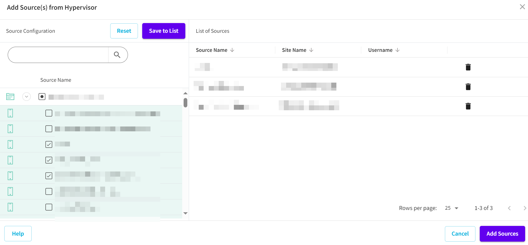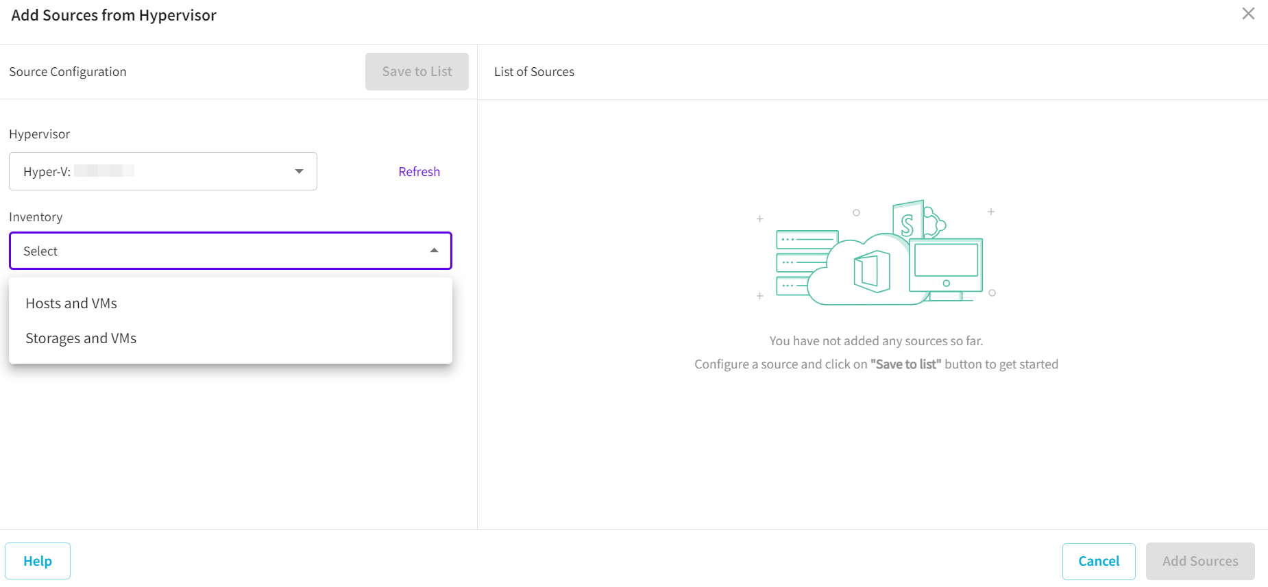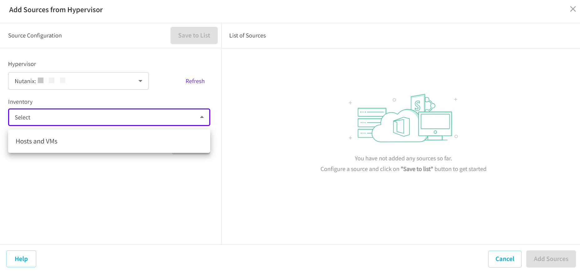 - On the Add Source(s) from Hypervisor screen, do the following: