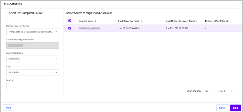 RPS Jumpstart allows you to migrate recovery points from a specific data store to another data store to the same RPS.