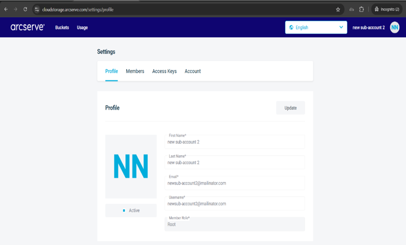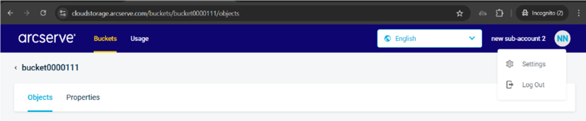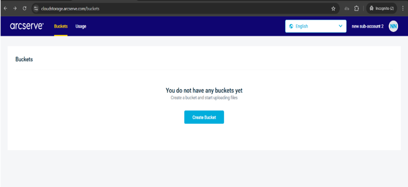 - Log into Arcserve Cloud Storage portal with your sub-account credentials.