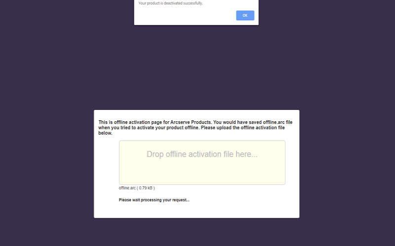 - Log into the same URL used for the offline activation process and upload the offline.arc file.