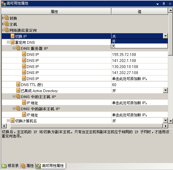 - 在“框架”窗格中选择“切换”选项卡,然后选择副本服务器作为切换主机。