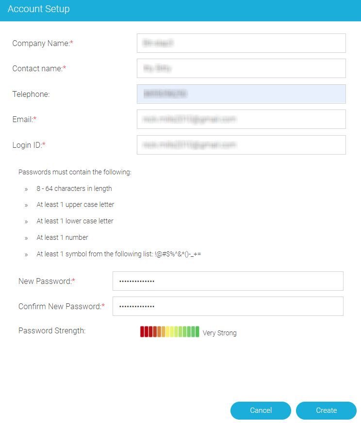 MSP accounts are setup on a per data center basis. The first time you select Arcserve SaaS Backup from the Managed Services menu you will be asked to create your MSP account. This is the primary account for the data center. You can only set up one main MSP account per data center.