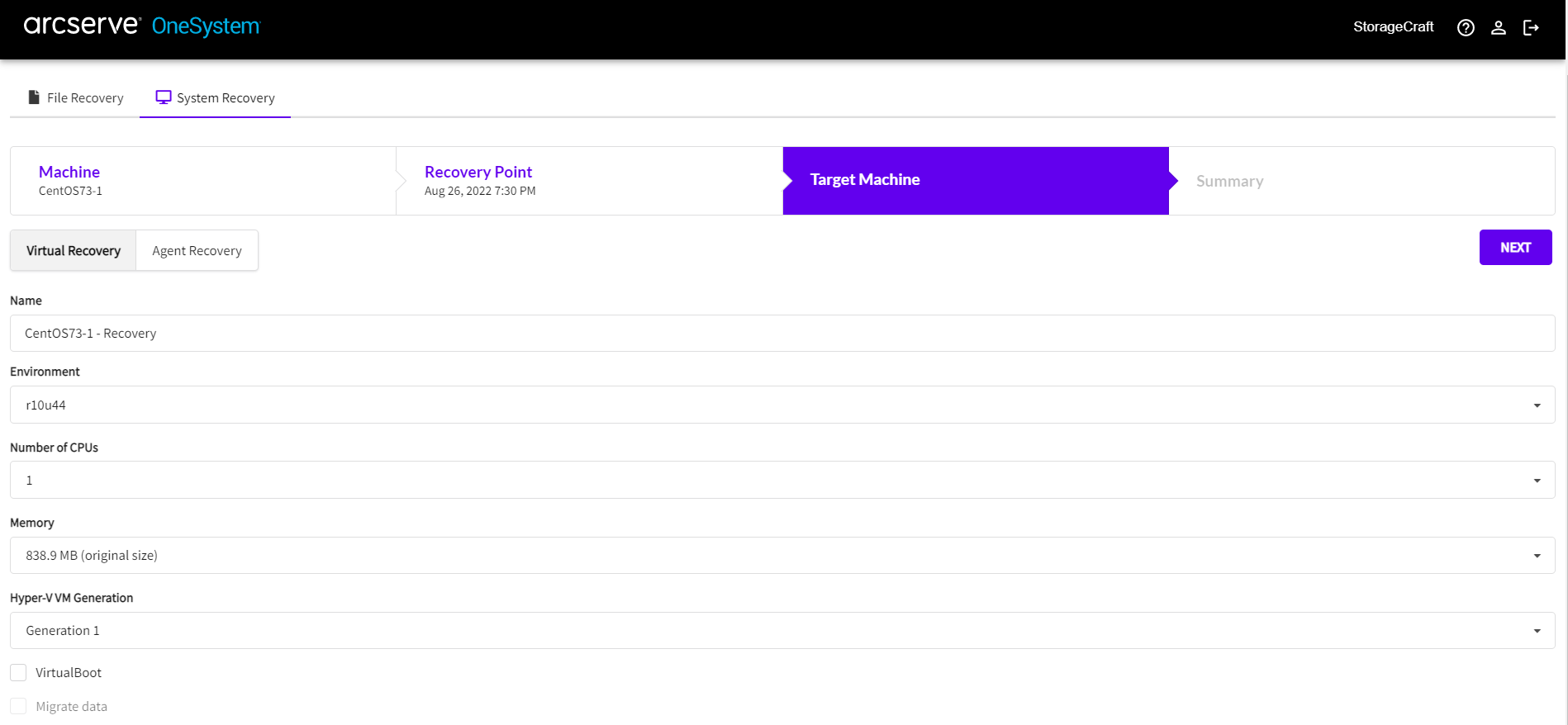 Important! The generation field is auto-populated based on the VM being restored. Overwriting it can cause your recovered VM to not boot if it is restored as an incompatible generation.