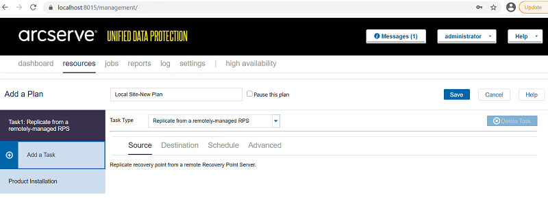- 已成功创建复制计划。您还可以将“复制”任务、“复制到远程管理的 RPS”任务和“虚拟备机”任务添加到计划。