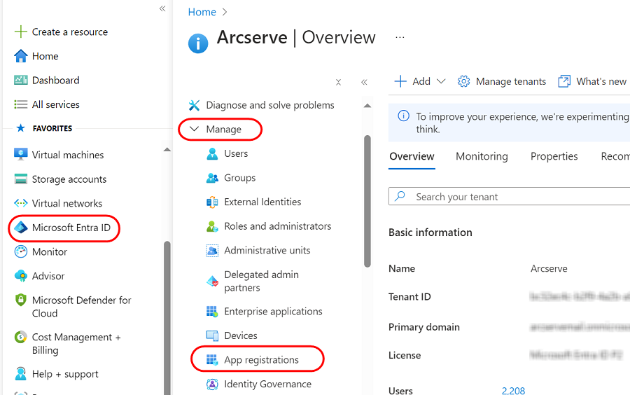 - 执行以下步骤,以注册将由 Arcserve UDP 用于与 Microsoft Azure 通信的 Microsoft Entra ID 应用程序: