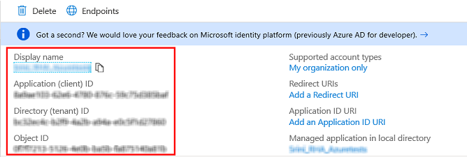 - 复制应用程序(客户端)ID 和目录(租户)ID 并将其保存到安全位置。