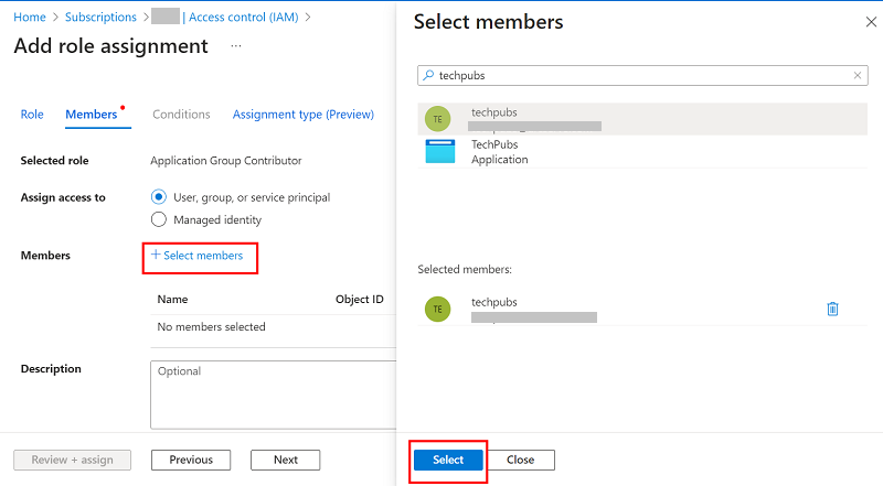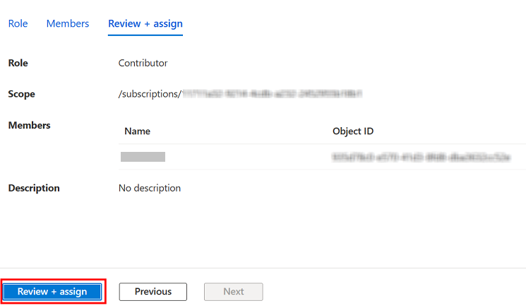 - 在“添加角色分配”页面上,执行以下操作,然后单击“检查 + 分配”。