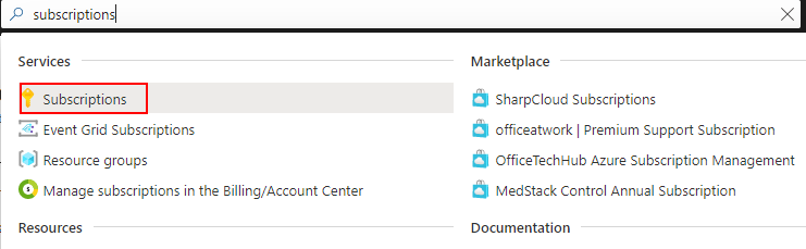 - 在搜索栏上,键入“订阅”,然后从列表中单击“订阅”。