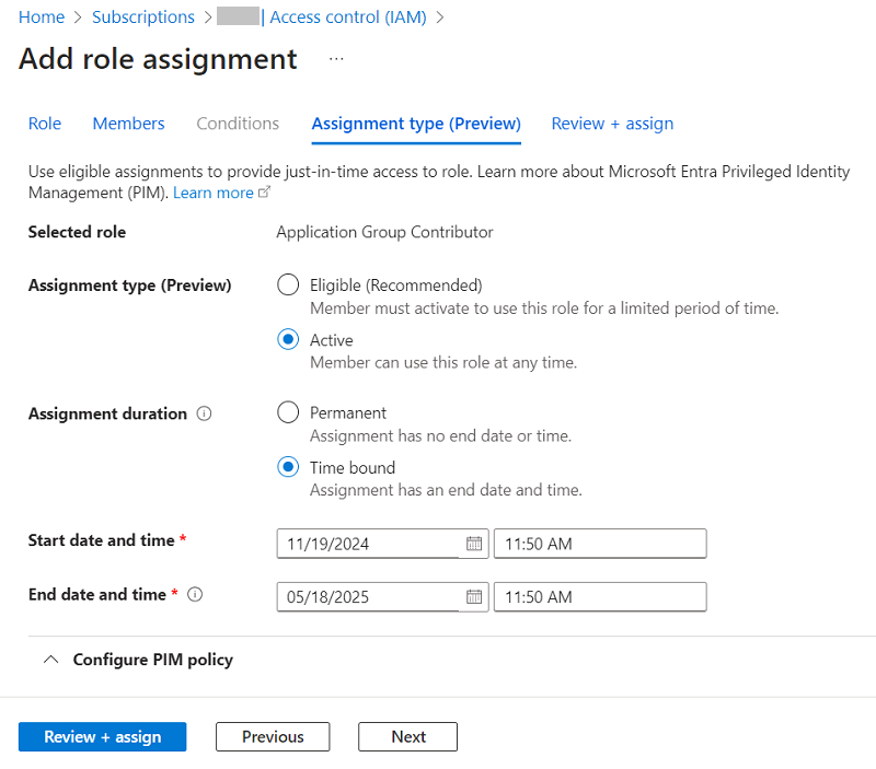 - 在“分配类型(预览)”选项卡上,执行以下操作并随后单击“下一步”: