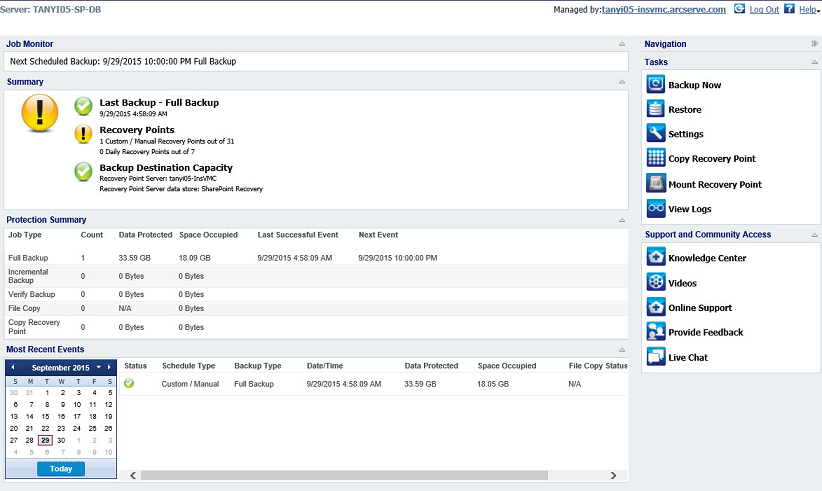 - 打开数据库服务器上承载的 Arcserve UDP 代理 UI。