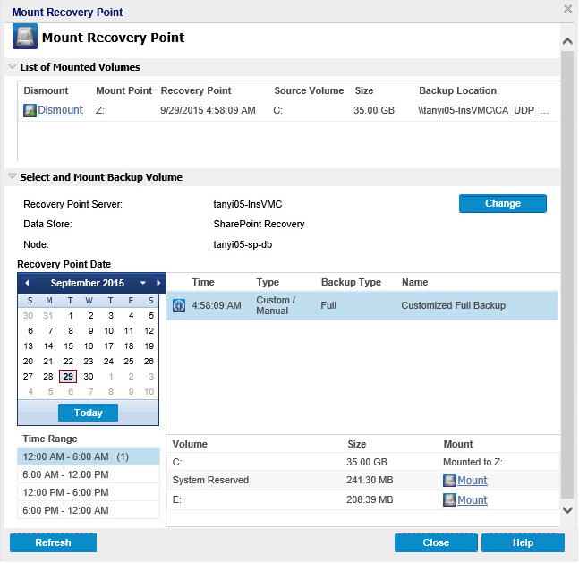 - 选择包含用于 SharePoint 的 SQL Server 数据库的卷。