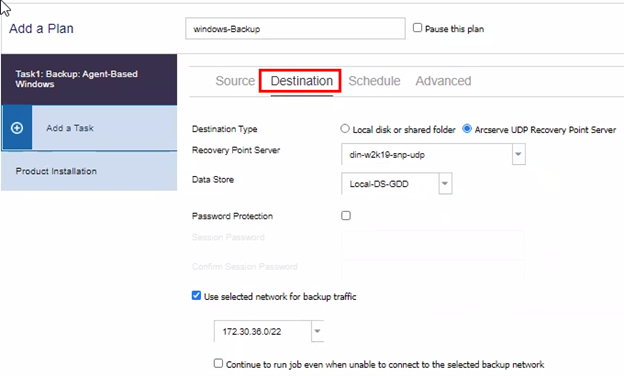 - 所选的备份网络仅适用于“备份”作业,不适用于“浏览恢复点”、“还原”等其他任务。