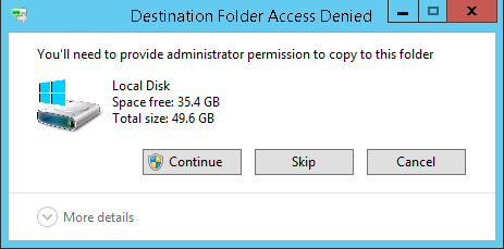 - 将一个文件从 C:\Windows 复制到 C:\ 并确保不显示以下消息: