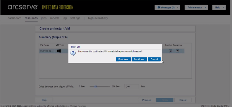 这是创建并发即时 VM 的最后一步。本节提供有关如何验证摘要、调整启动顺序以及提供 VM 启动触发之间的延迟的信息。