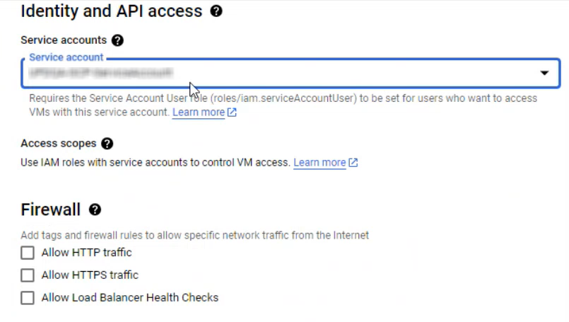 - 注意:默认情况下,“计算引擎默认服务帐户”选项被选择为服务帐户。