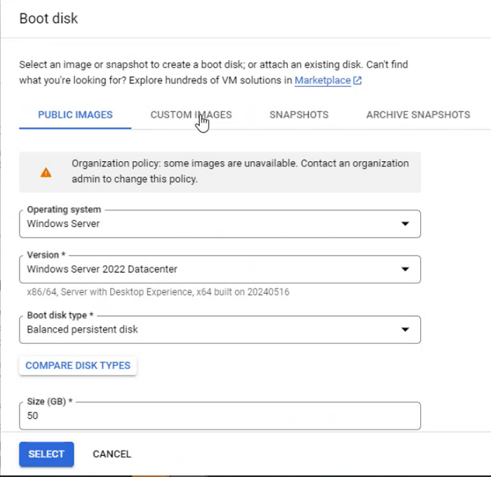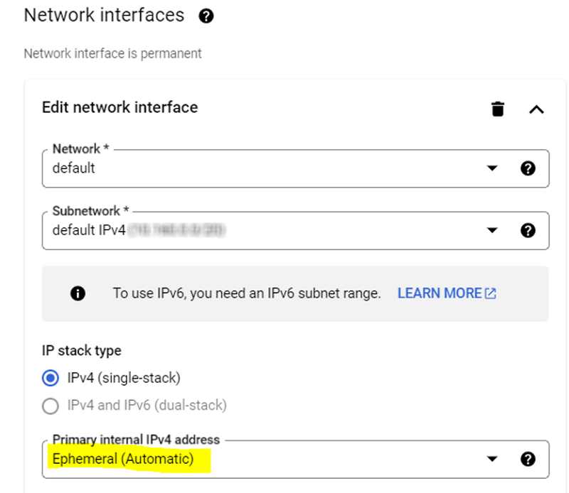 - 注意:如果项目中没有网络,请创建一个新的 VPC 网络,可以在其中指定防火墙规则以在创建实例之前打开所需的端口。有关详细信息,请参阅“如何在 Google Cloud 上创建带防火墙的 VPC 网络”。