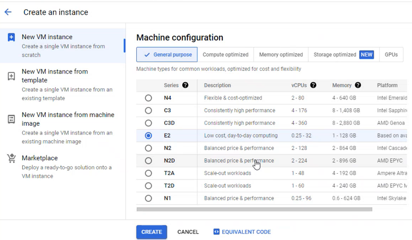- 默认情况下会选择 E2。可以根据需要更改计算机类型。