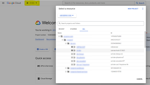 - 单击 Google Cloud 旁边的“选择项目”下拉列表。