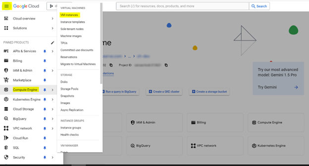 - 转到导航菜单 >“计算引擎”>“VM 实例”。