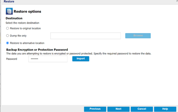 - 注意: 如果您尝试还原的数据已加密,请根据需要提供密码。