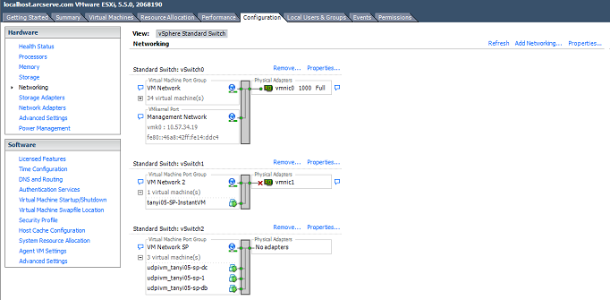 - 當您回到 [網路配置] 索引標籤時,可以看見已新增虛擬交換器。