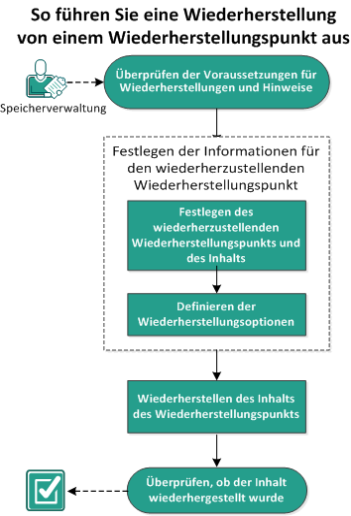 Das folgende Diagramm veranschaulicht den Prozess für das Wiederherstellen von einem Wiederherstellungspunkt aus: