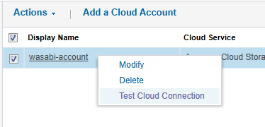 - To verify connectivity, right-click the newly created cloud account and select Test Cloud Connection.
