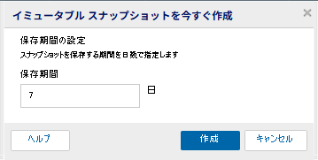 - スナップショットを保存する期間を日数で指定し、[作成]をクリックします。
