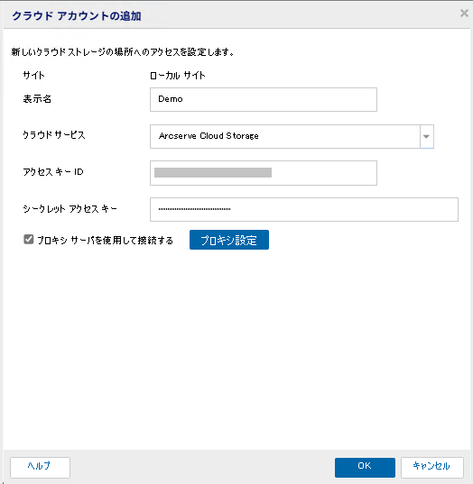 Arcserve クラウド ストレージの Arcserve クラウド アカウントの追加