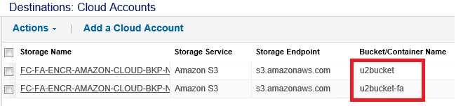 Note: If you have configured File Copy and File Archive in versions Arcserve UDP v6.0 or previous versions and now you upgrade to the latest version of Arcserve UDP, then for File Archive Arcserve UDP creates a new cloud bucket suffixed with -fa. File Copy uses the same bucket that was used in the previous version.