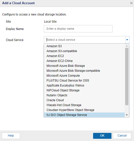 - Display Name specifies the name of the cloud storage. This name will be added to Console for identifying the cloud account. Each cloud account must have a unique display name.