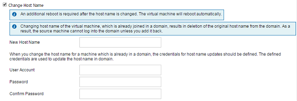 - Click the Change Host Name check box to update the hostname of the Instant Virtual Machine.