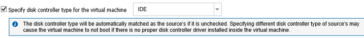 Note: The Specify disk controller type for the virtual machine check box is available if you have selected VMware vSphere as the VM location.
