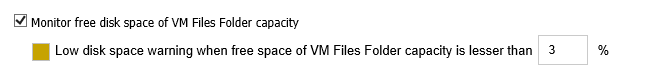 Note: The Monitor free disk space of VM Files Folder capacity check box is selected by default. The capacity bar appears in yellow in Instant Virtual Machines page, if the free space of VM Files Folder capacity is lesser than the threshold value. The default threshold value is 3%. You may change the value, if required.