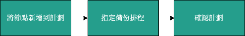 計劃是步驟的集合,而這些步驟會定義要備份哪些節點,以及何時備份。Arcserve UDP 設備可讓您建立基本計劃。使用 UDP 設備精靈建立計劃是一個三步驟程序:
