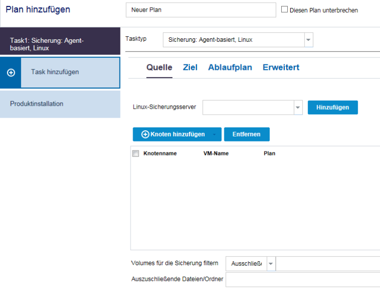 Ein Sicherungsplan besteht aus einem Sicherungstask, der eine Sicherung des physischen oder virtuellen Knotens ausführt und die Daten am angegebenen Ziel speichert.