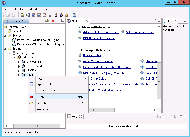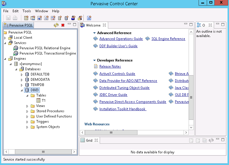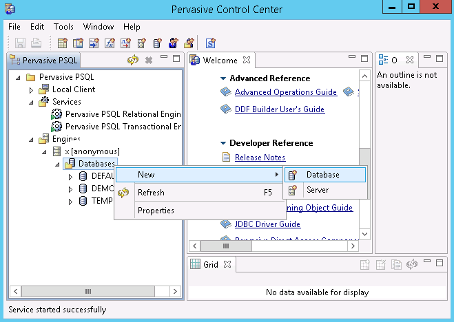 - 从操作系统“开始”菜单访问“Pervasive 控制中心 (PCC)”。