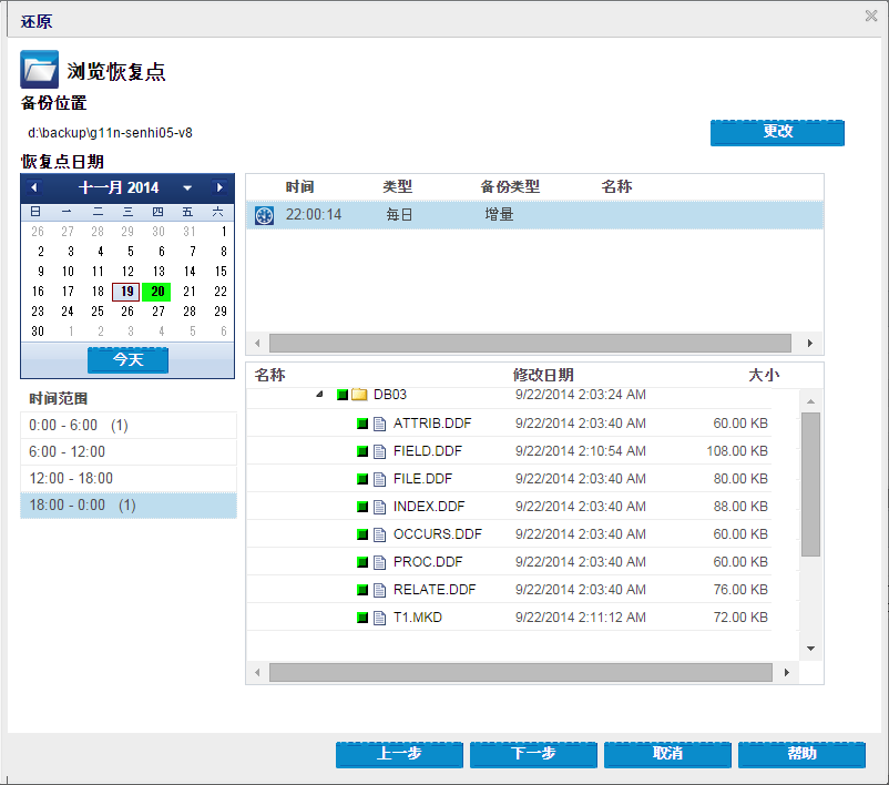 - 从“浏览恢复点”对话框,选择要还原的恢复点数据,然后单击“下一步”。