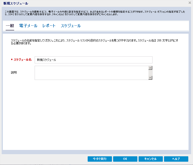 - 一般:新規スケジュールの名前および説明(オプション)を指定します。
