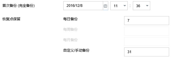 - 指定“自定义”、“每日”、“每周”和“每月”排定的恢复点保留设置。